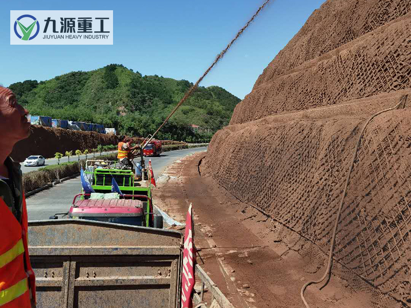 噴播機是應用于邊坡綠化的專業(yè)設備,通過本設備將土壤基質(zhì)、綠化草籽、保水劑、黏合劑、肥料等,在噴播機攪拌罐中與水混合成膠狀的漿液,用泥漿泵將其噴播于坡面上。由于漿液中含有保水材料、黏合材料、各種養(yǎng)分,在保證了植物生長所需的水和其它營養(yǎng)物質(zhì)來源的同時有效防止雨水沖刷對噴播材料的破壞,故而植物能夠健康、迅速地成長。